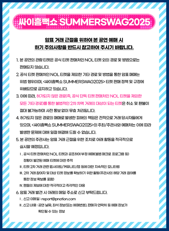 • 티켓 분실 시 재발권 절대 불가 → 티켓 꼭 보관하세요!